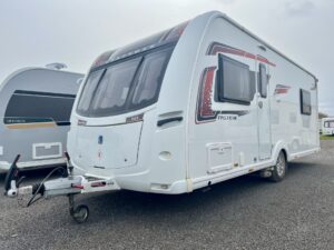 The 2018 Coachman Pastiche 545 is a 4 berth luxury touring caravan with rear island bed, central washroom and parallel lounge that converts into a double bed in the evening.